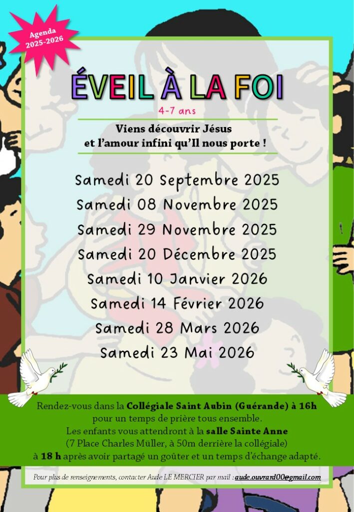 Ce temps d’éveil à la foi mensuel est organisé par une petite équipe de jeunes parents bénévoles, pour les 4-7 ans.