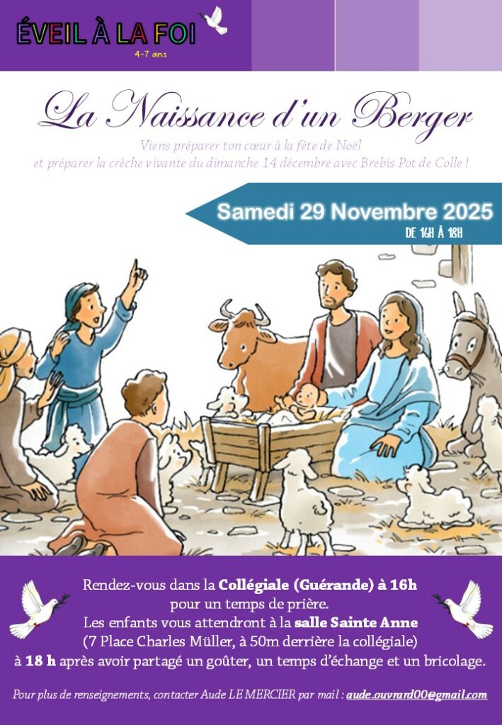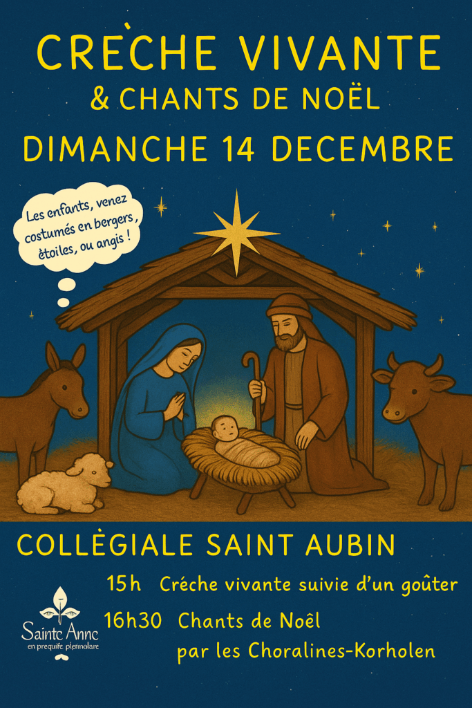 ATTENTION : la date du 20 décembre est remplacée par une crèche vivante le dimanche 14 décembre à 15h à la Collégiale de Guérande. Les enfants y sont invités à venir costumés en moutons, anges ou étoiles…