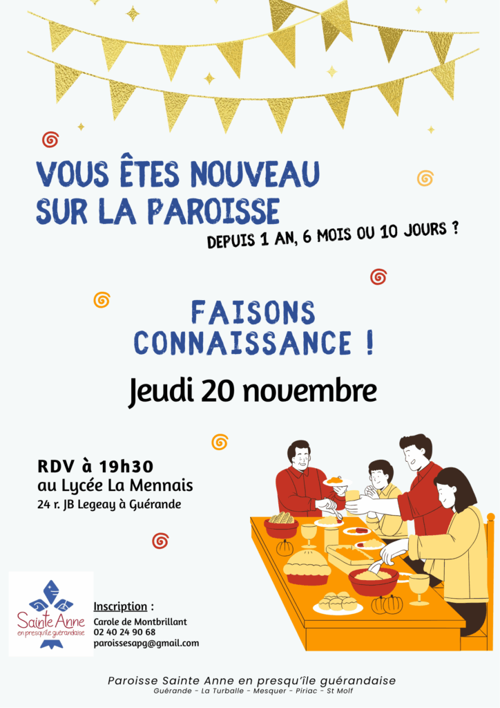 Inscrivez-vous vite auprès de Carole de Montbrillant au 02 40 24 90 68 ou par mail à paroissesapg@gmail.com
